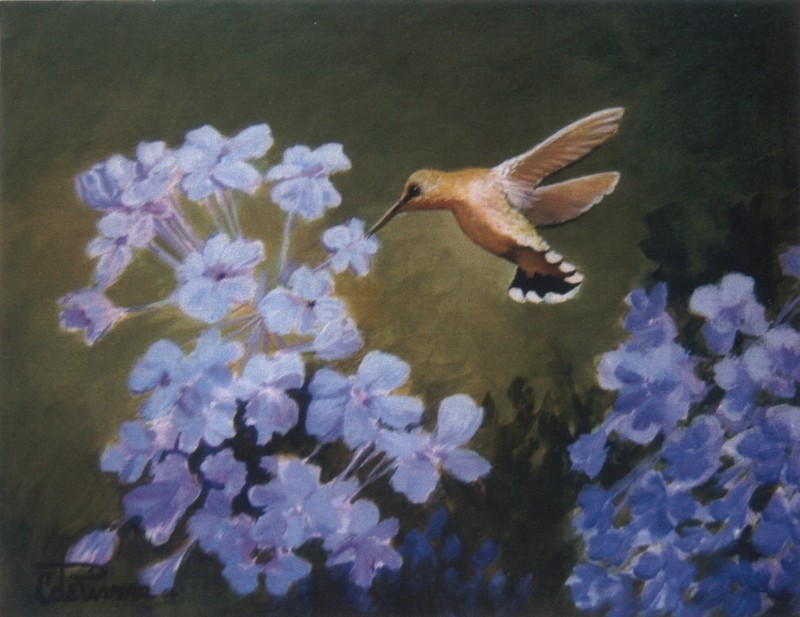 "Hummer with Plumbago" © Clementina Rivera