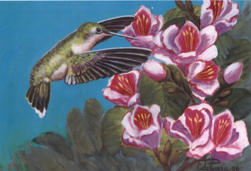 "Hummer among the Orchids" © Clementina Rivera