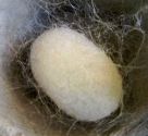 There are many varieties of mulberry trees. Silkworms will only eat the leaves of the white mulberry tree (Morus alba). Silk production, or sericulture, has been practiced in China for at least 5,000 years. Domesticated silkworms are entirely dependent on humans and no longer occur naturally in the wild. Domesticated silkworm moths cannot fly. They have been bred selectively for improving the quality of the cocoon and silk production.