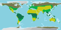 Biological diversity increased after the Cryogenic period. The map shows the temperatures in various regions of the Earth.
