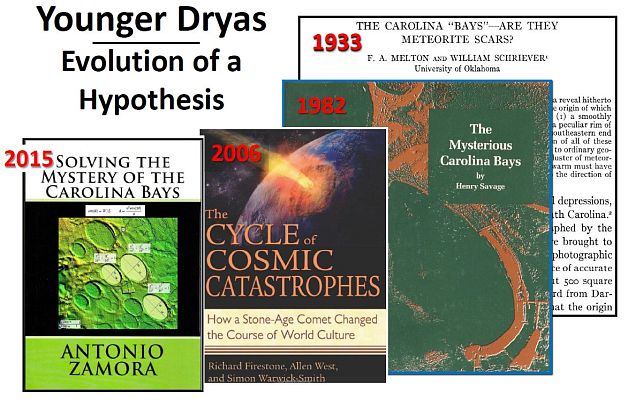 The Younger Dryas Impact Hypothesis proposes that one or more comet fragments impacted the Earth 12,900 years ago killing the megafauna and triggering a global cooling event that lasted 1300 years.