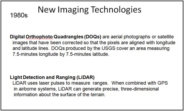 12) Two technologies appeared in the 1980s that had application to the Carolina Bays. The U.S. Geological Survey (USGS) made available Digital Orthophoto Quadrangles that provided detailed images of geological structures not easily discernible from aerial photographs.