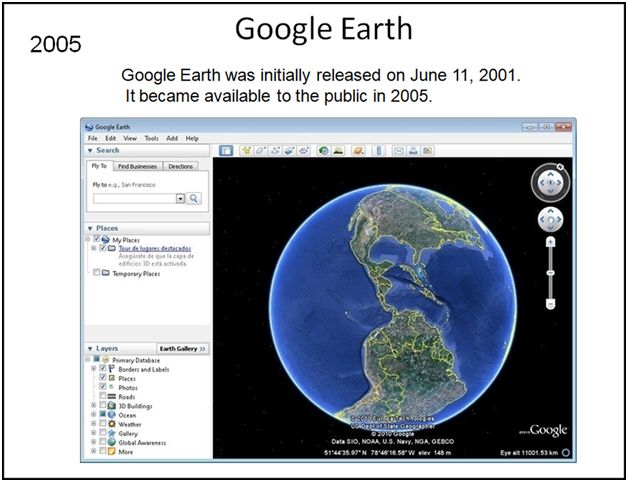 23) Starting in 2005, Google Earth changed the way in which we view the world. Anyone with a personal computer could now explore the surface of the Earth. Google Earth has helped to find lost ancient cities and meteorite impact craters in remote locations. Google Earth has become important for teaching geologic map interpretation using its interactive 3D terrain viewing capability. The use of overlays, such as LiDAR maps, makes Google Earth a very flexible tool.