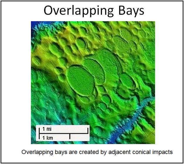 46) Overlapping bays are formed from adjacent conical impacts as illustrated in the next slide.