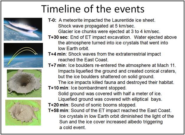 56) This is a summary of the events proposed by the Glacier Ice Impact Hypothesis and deduced from ballistic equations and scaling laws.