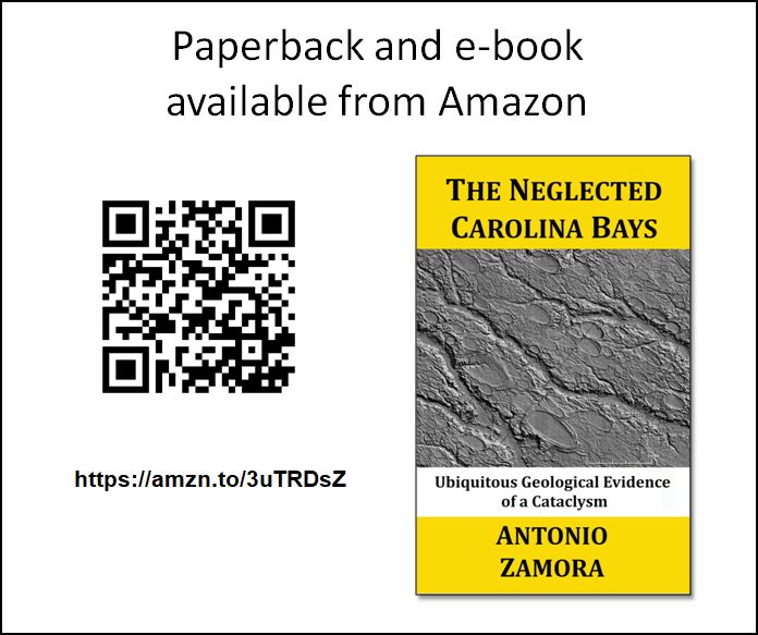 60) In 2014, I published a small book entitled "Killer Comet" describing the YDB extinction event and the Glacier Ice Impact Hypothesis. In 2015, I published a more technical book "Solving the Mystery of the Carolina Bays" describing the geometrical analysis of the bays, additional experiments supporting the impact hypothesis, and the thermodynamics of water ejected above the atmosphere. I presented a copy of the second book to Dr. Richard Carlson, Director of the Department of Terrestrial Magnetism of the Carnegie Institution of Washington, and he suggested that I should submit a paper to a peer-reviewed publication. My article entitled "A model for the geomorphology of the Carolina Bays" appeared in 2017 in the April issue of the journal Geomorphology. My latest book, published in 2020, has the title "The Neglected Carolina Bays - Ubiquitous Geological Evidence of a Cataclysm".